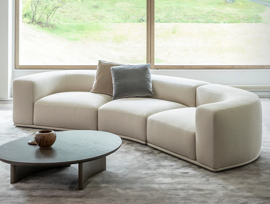 流れるようなカーブを描く、ラウンド型のモジュラーソファ。座る人同士の顔が見渡しやすく、自然な距離感でリラックスしたコミュニケーションが生まれます。4つのユニットを組み合わせることで、どのようなスケールの空間にも自在にフィットします。
