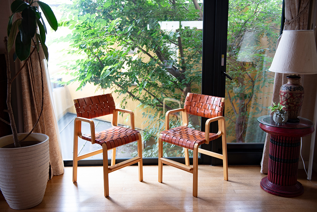水越さんのご自宅には、マレンコ以外にも長く愛用されている家具や小物が数多く置かれています。バンコクにいらした頃にアジア各地で購入された民芸品もあれば、ご両親から受け継がれた古い家具も。大きなエゴノキが生い茂る中庭に面した窓の前には、2人のお子様が使っていたというNTのキッズチェア、NUB(生産終了)の脚をカットしたものが並べられていました。「2人の子供の食事用の椅子として購入しましたが、成長に合わせて脚をカットして高さを変えてきました。大人の椅子と同じ高さになったので今でも座っています」と水越さん。ライフスタイルの変化に合わせて微調整しながら、同じものを大切に使い続けることの素晴らしさが、この家の随所から伝わってきます。