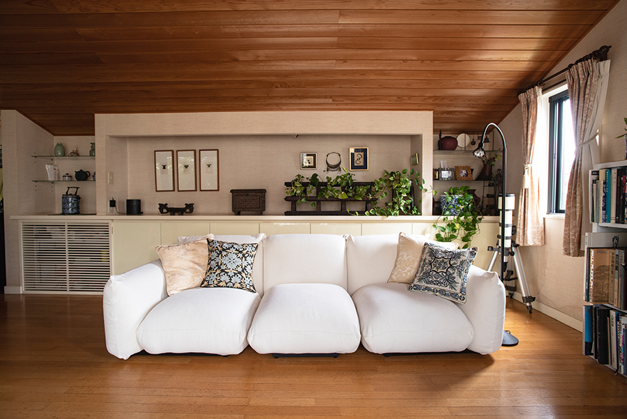 「私にとってマレンコは人生のパートナー的なソファ。カバーはかなりいろいろなものを持っていますが、やっぱり白系のものがしっくりくる気がします。カーテンなど合わせて替えたりできるのもいいですね」と水越さん。事務所を訪れた施主の方が「水越さんのお宅で見て素敵だったから」と、マレンコを購入されることも少なくないそうです。なんと、お嬢様がご結婚された時に水越さんがプレゼントされたのもマレンコだそう!
