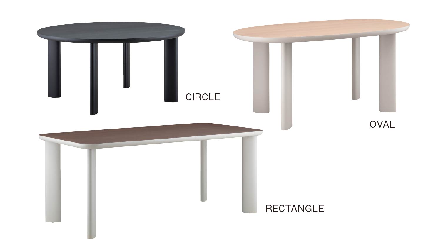 長方形:W.1600, W1800,W 2000の3種類 D.900 / W.2200,D1000