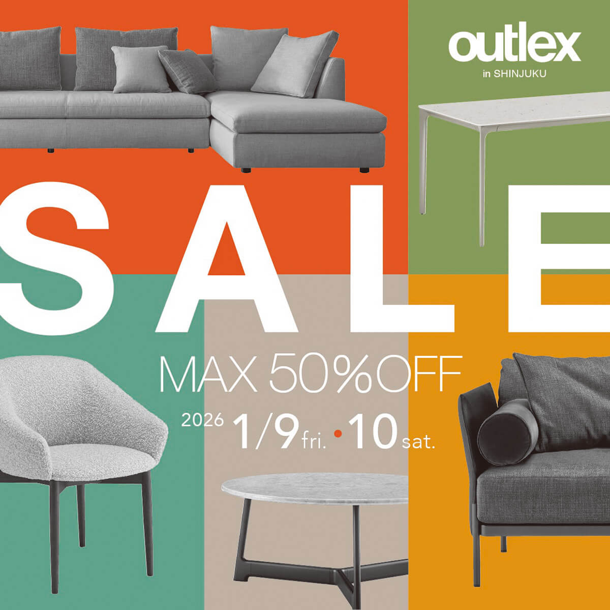 展示品が最大50%OFFアウトレット家具セールを開催 来年1月9日(金)・10日(土)の2日間、ベルサール新宿にて当社取り扱い製品(arflex・Molteni&C)のアウトレットセール「アウトレックス」を開催。展示品や製造終了品を全品20~50%OFFの...