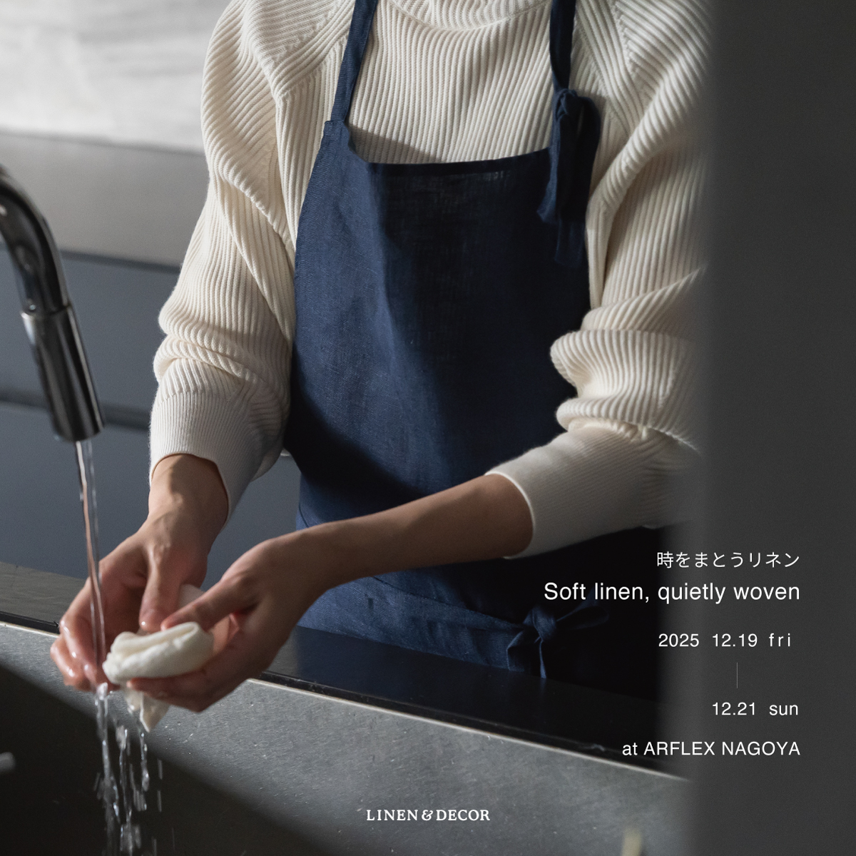 日々の風景を静かに彩るモダンな茶器とリネン小物 アルフレックス名古屋では12月19日(金) から21日(日)の期間、上質なリネンのある日常を提案する「LINEN & DECOR」と、テーブル茶道教室「余白」によるPOPUPイベントを行います。 期...